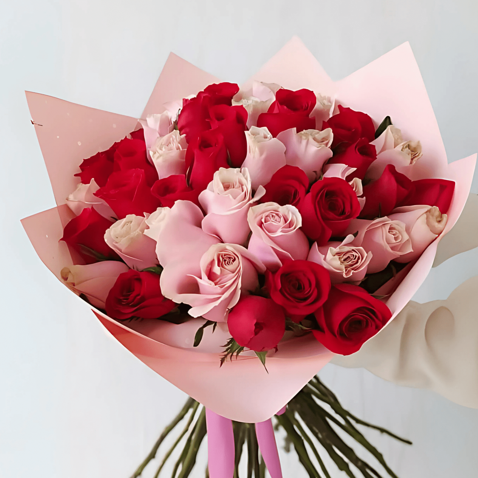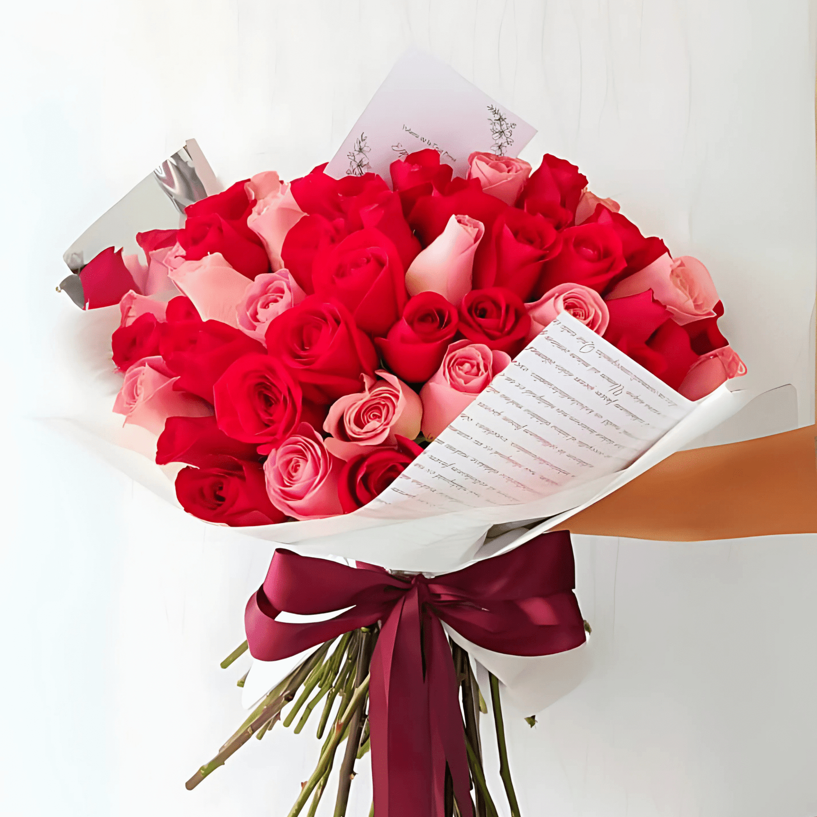Hermoso ramo de 50 o 75 rosas combinadas. Contáctanos para poder informarte acerca de colores de flores disponibles.