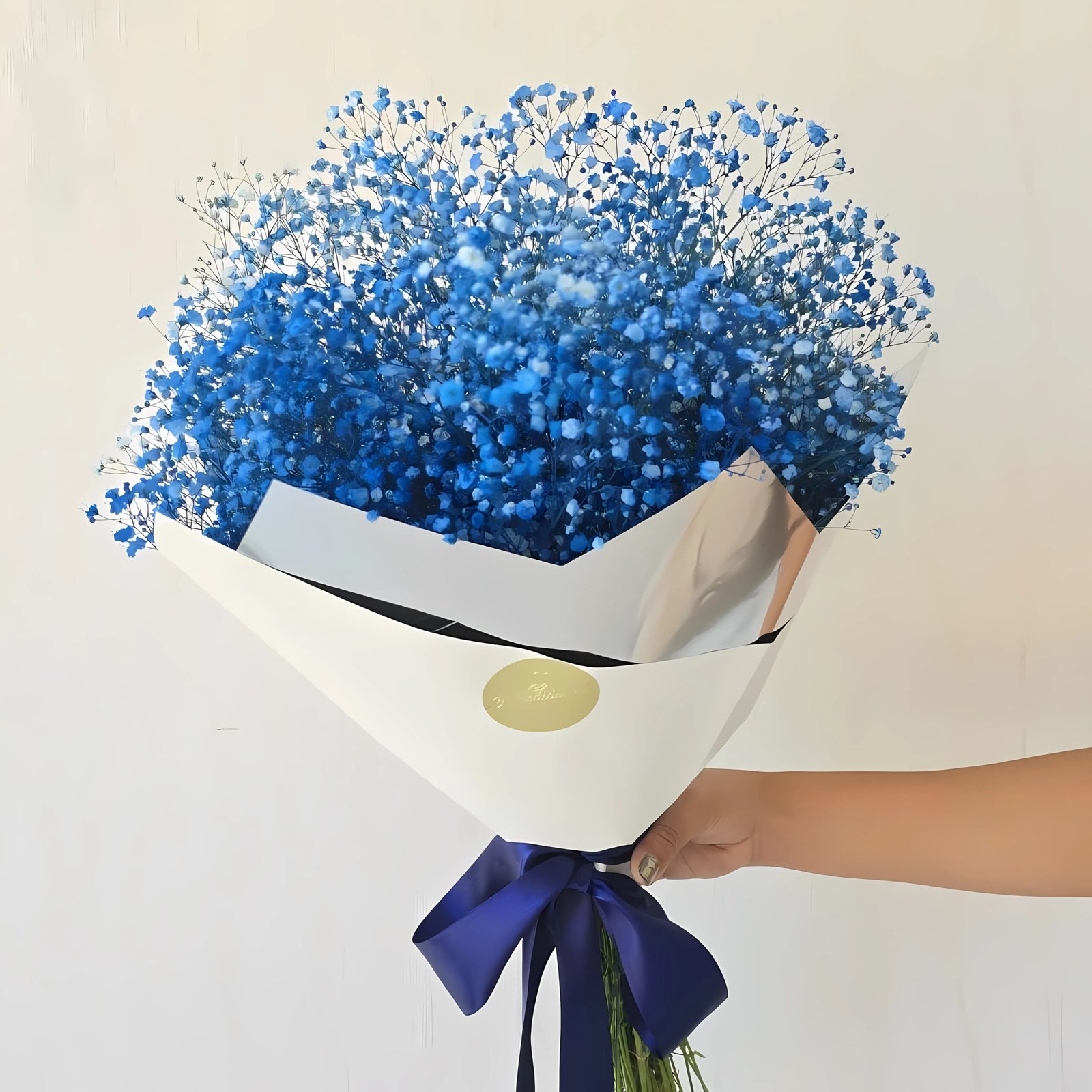 Un ramo ligero y moderno de gypsophila azul, ideal para regalar o decorar.